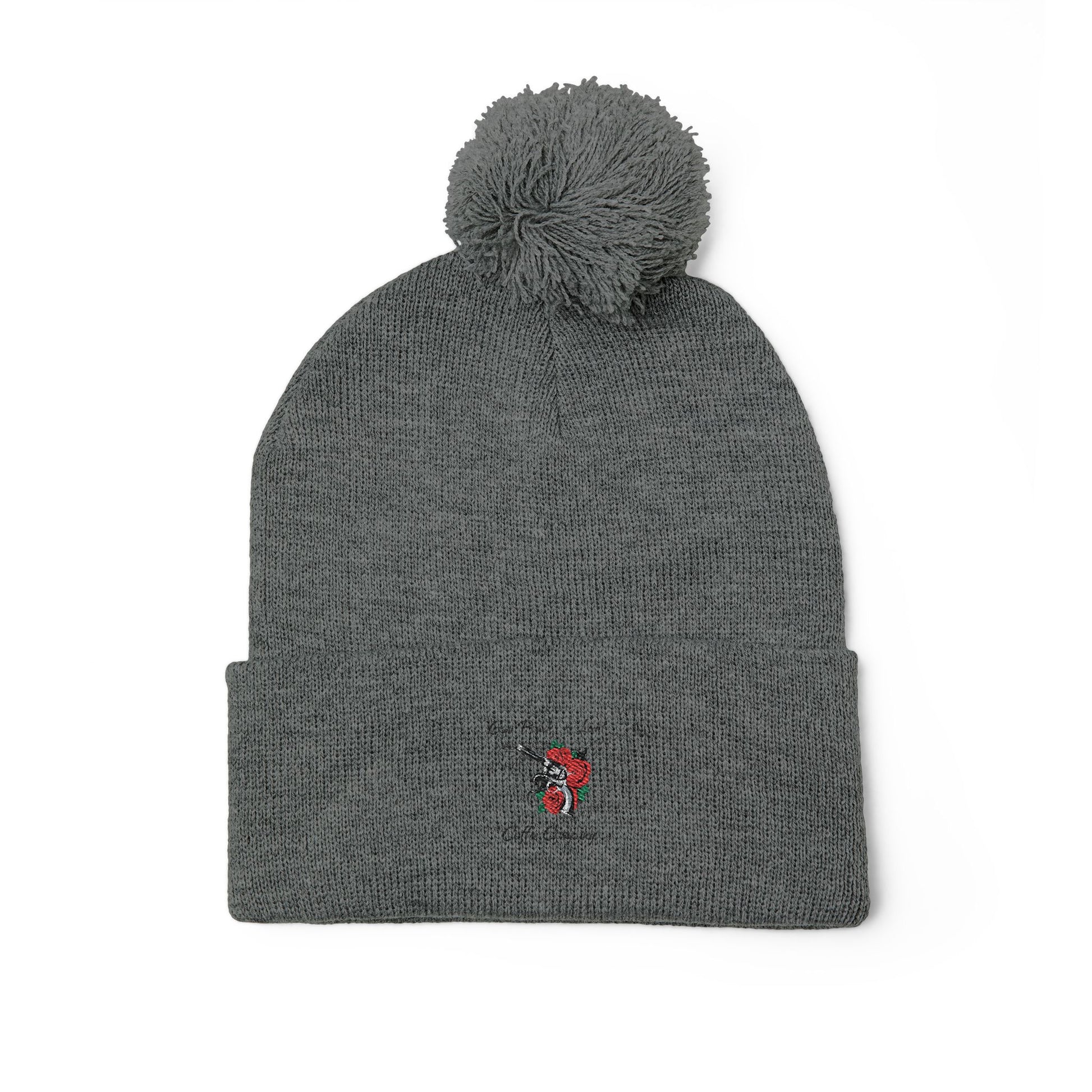 Add some cozy charm to your cold-weather collection with this custom embroidered pom-pom knit cap. Made from 100% acrylic, this 12″ (30.5 cm) knit beanie offers warmth and comfort, perfect for chilly days. The fold-over 3″ (7.6 cm) cuff provides an ideal spot for showcasing the unique embroidery design, while the playful pom-pom on top adds a classic touch.